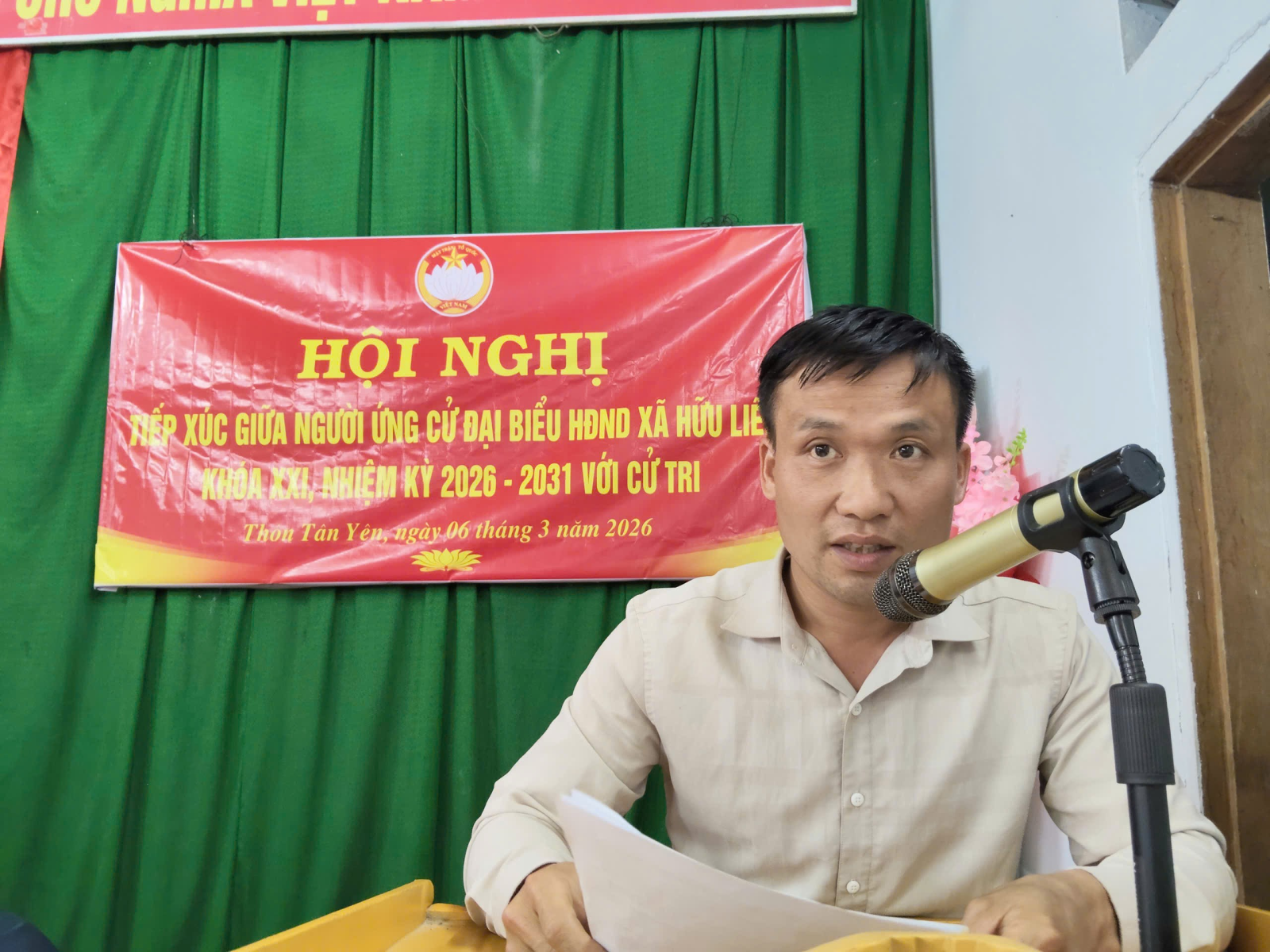 Chiều 6/3, các ứng cử viên đại biểu HĐND xã Hữu Liên khoá XXI, nhiệm kỳ 2026 – 2031, thuộc đơn vị bầu cử số 3 đã có buổi tiếp xúc cử tri vận động bầu cử tại thôn Tân Yên.