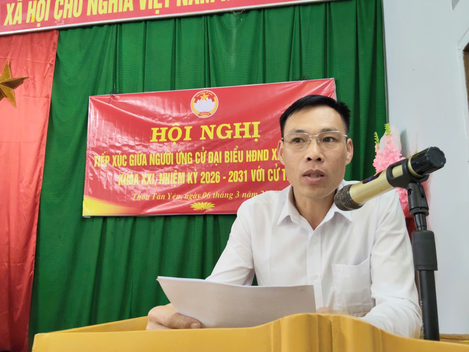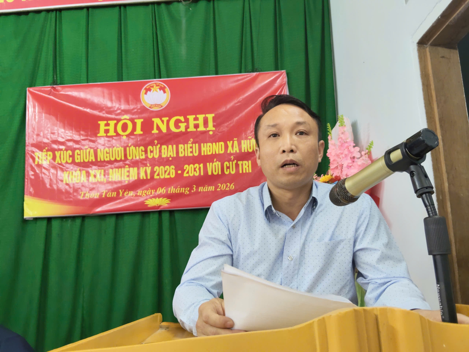 Tại hội nghị, đại diện lãnh đạo Ủy ban MTTQ Việt Nam xã giới thiệu tóm tắt tiểu sử của người ứng cử đại biểu HĐND xã khóa XXI; các ứng cử viên lần lượt báo cáo với cử tri về chương trình hành động nếu được bầu làm đại biểu HĐND xã khóa XXI nhiệm kỳ 2026-2031.