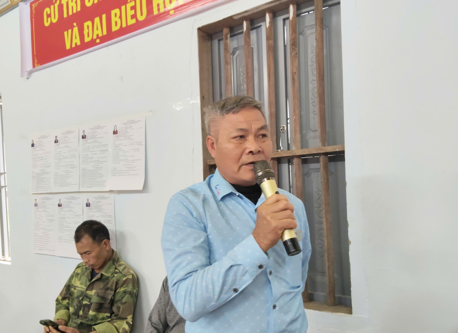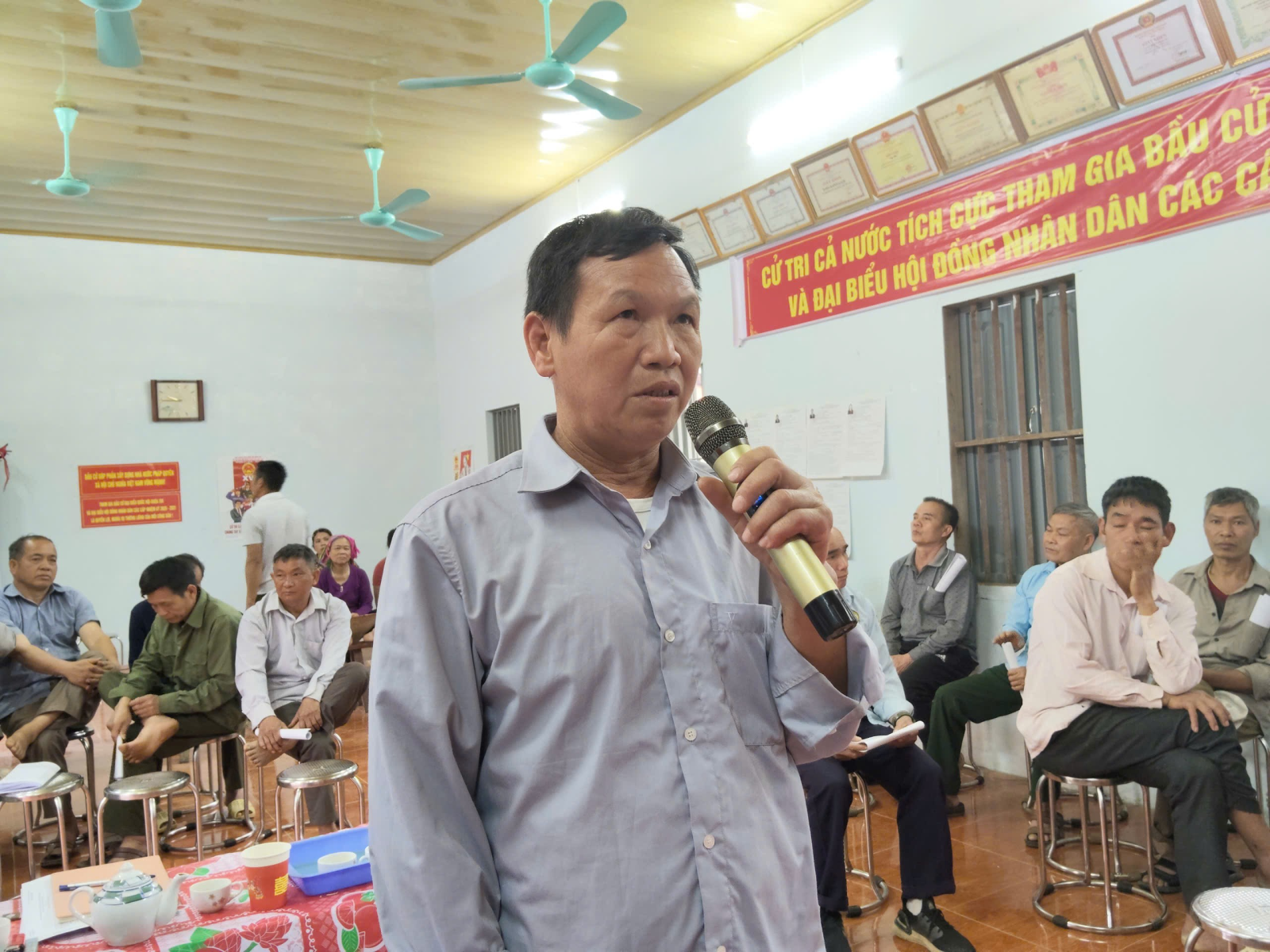 Cử tri thôn Tân Yên phát biểu ý kiến tại hội nghị