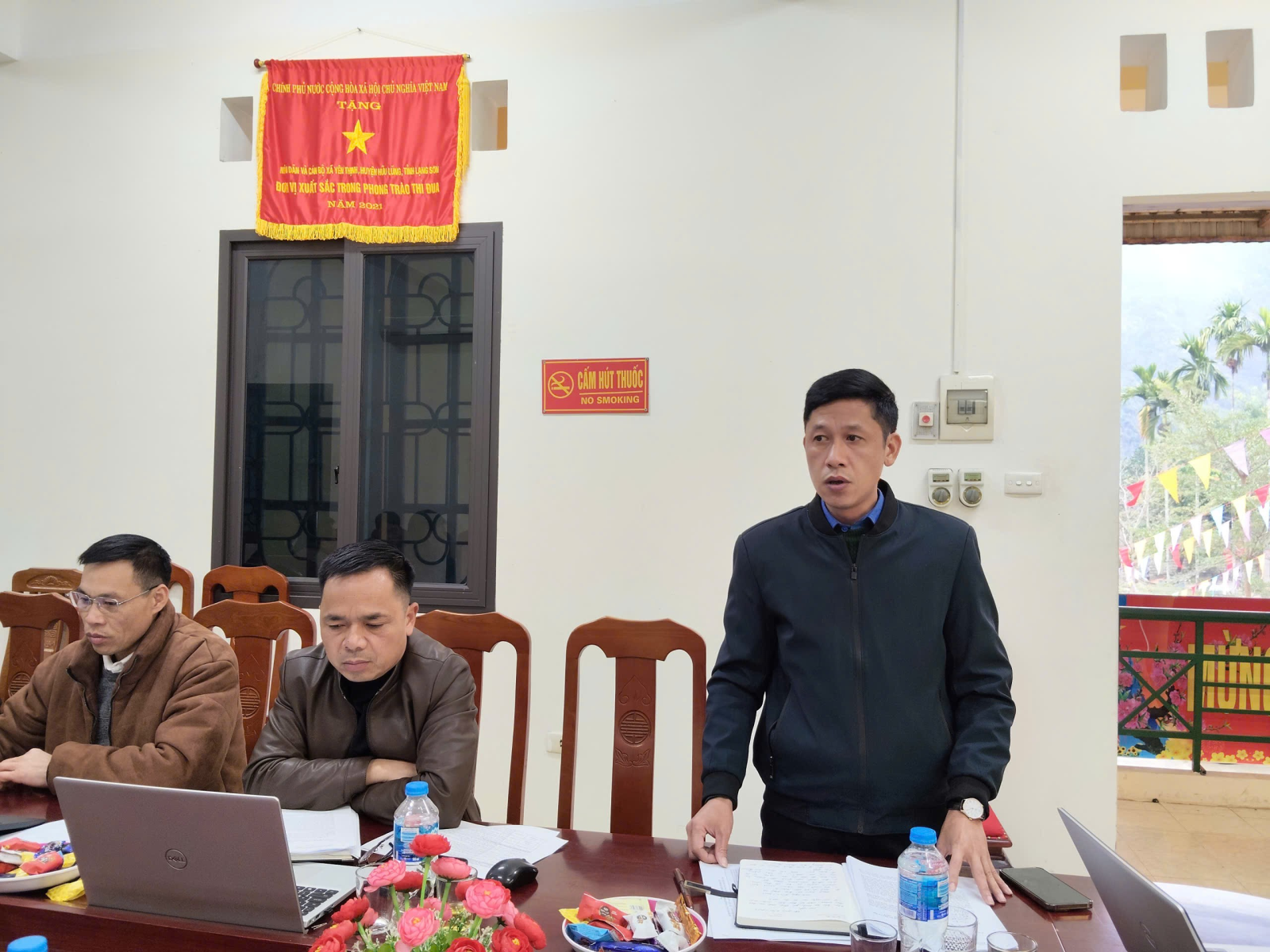 Đồng chí Nguyễn Duy Toàn, Bí thư Đảng uỷ, Chủ tịch HĐND xã phát biểu tại hội nghị