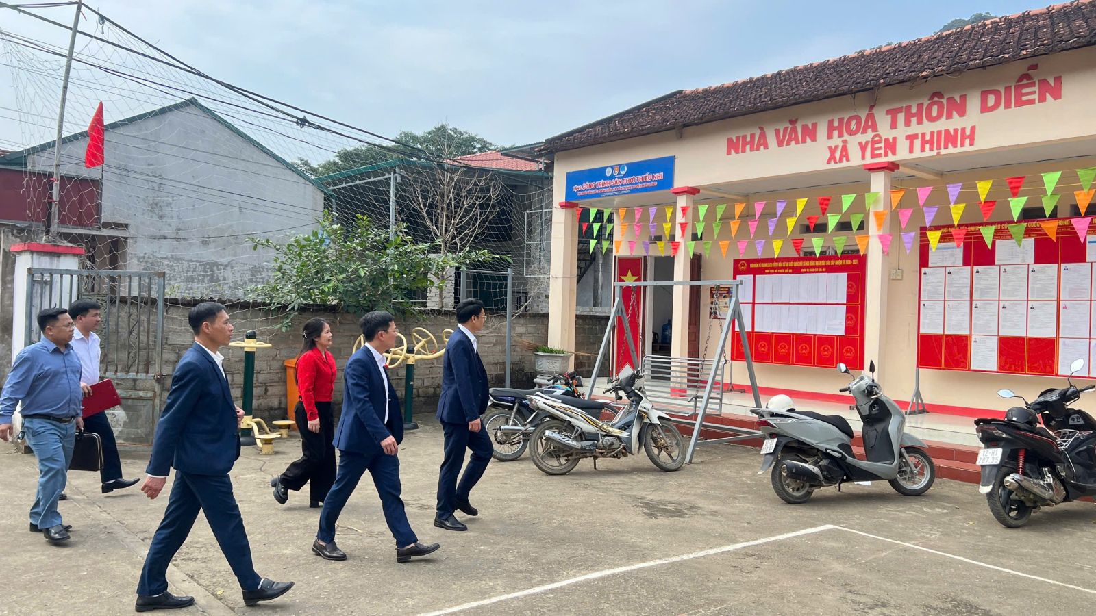 Đoàn kiểm tra tại khu vực bỏ phiếu thôn Đồng Tiến
