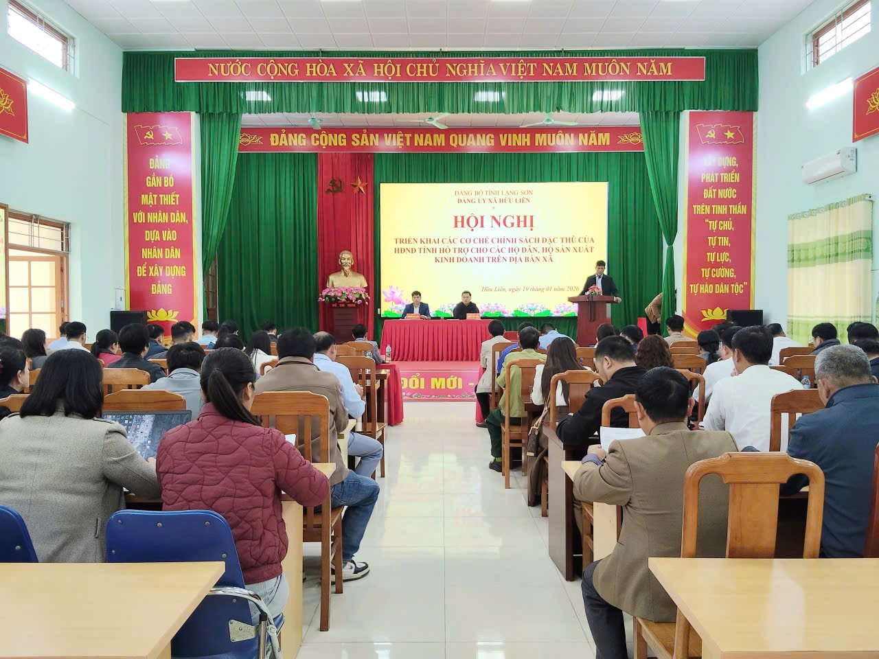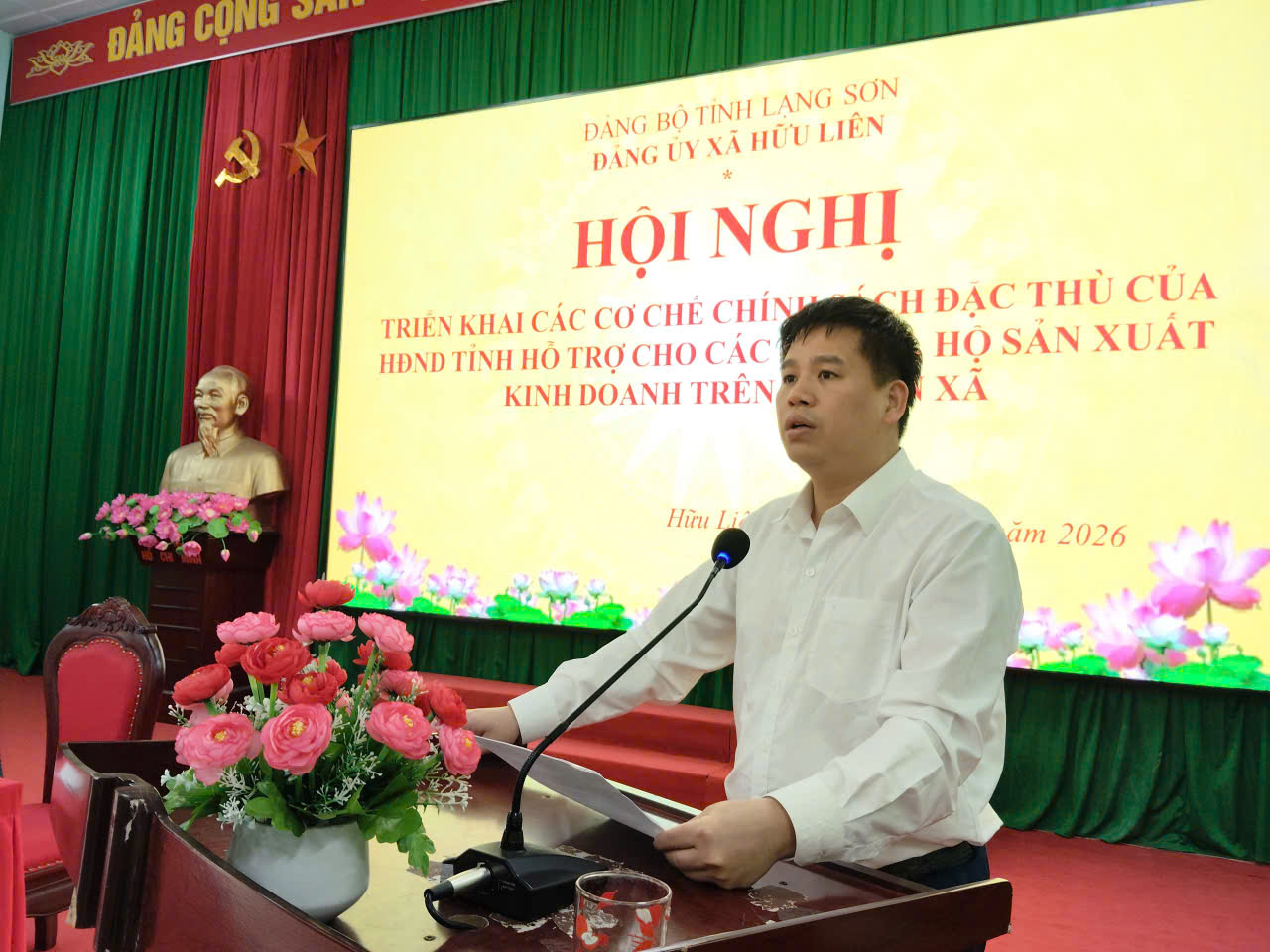 Chiều ngày 19/1, Đảng uỷ xã Hữu Liên tổ chức hội nghị triển khai các cơ chế chính sách đặc thù của HĐND tỉnh hỗ trợ cho các hộ dân, hộ sản xuất kinh doanh trên địa bàn xã. Dự và chỉ đạo hội nghị có đồng chí Nguyễn Duy Toàn, Bí thư Đảng uỷ, Chủ tịch HĐND xã. Cùng dự có các đồng chí thường trực Đảng ủy, HĐND, UBND xã; Các đồng chí Ủy viên BCH Đảng bộ xã; lãnh đạo các phòng, ban, ngành, cán bộ công chức, viên chức xã; Các đồng chí Bí thư, phó bí thư chi bộ trực thuộc; Các doanh nghiệp, chủ Homstay trên địa bàn và đại diện các hợp tác xã, Ban quản lý khu du lịch xã.