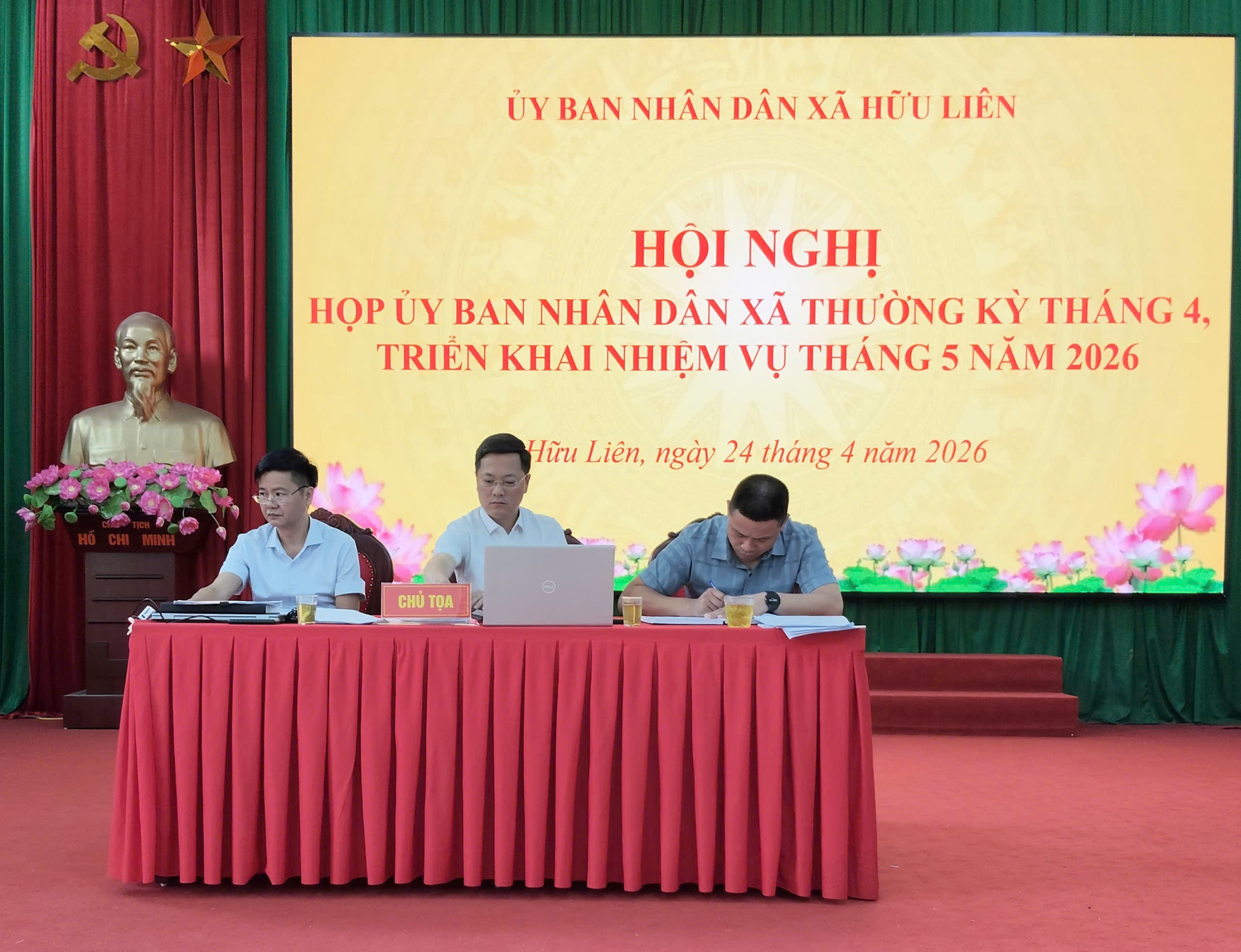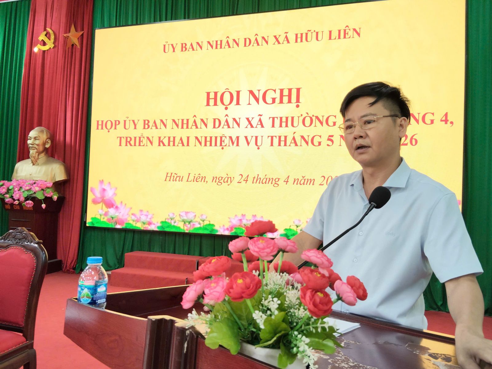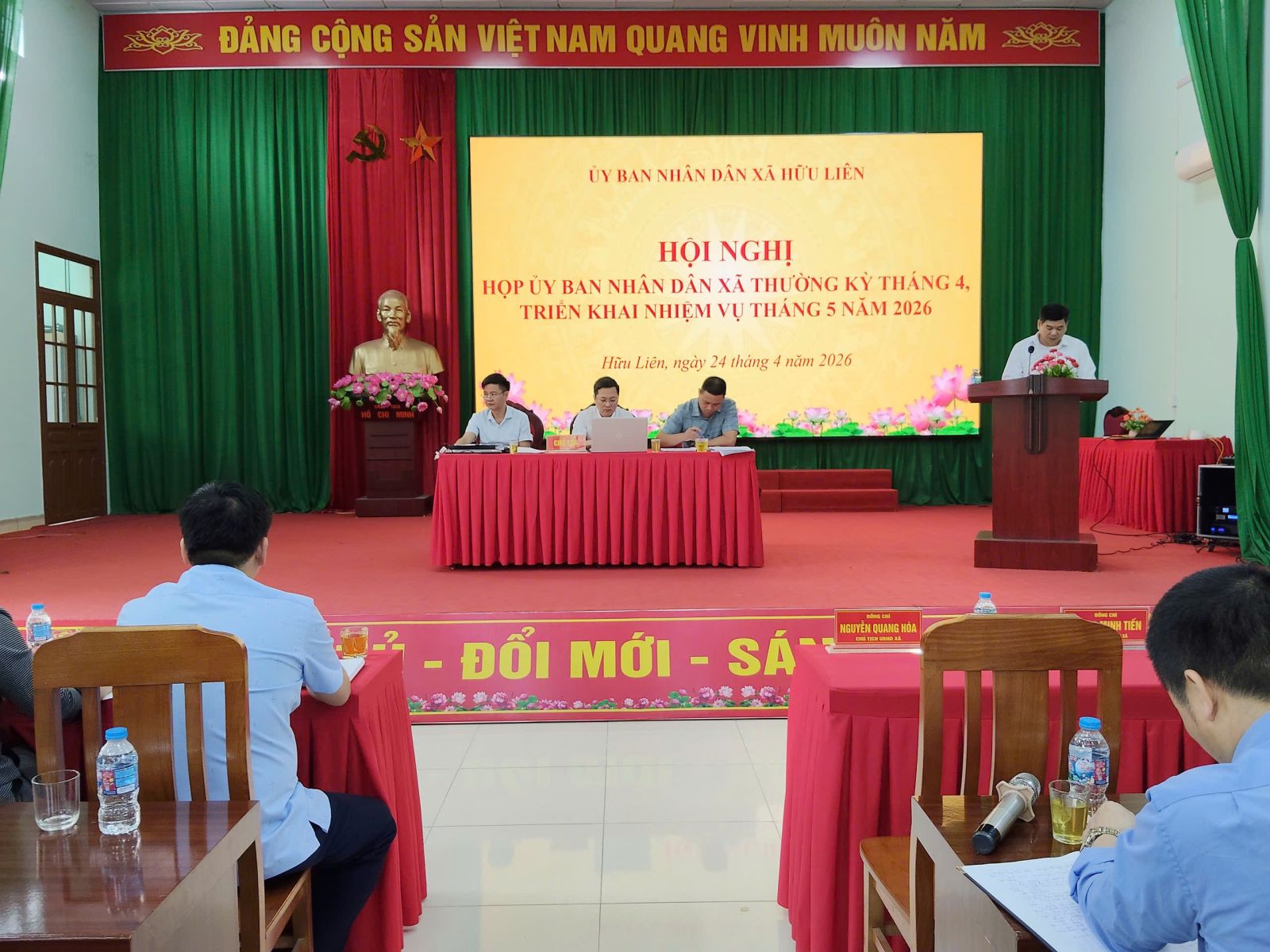 Ngày 24/4, UBND xã Hữu Liên tổ chức hội nghị họp thường kỳ tháng 4/2026 nhằm đánh giá tình hình thực hiện nhiệm vụ phát triển kinh tế - xã hội, quốc phòng - an ninh tháng 4, đồng thời triển khai phương hướng, nhiệm vụ trọng tâm tháng 5/2026.