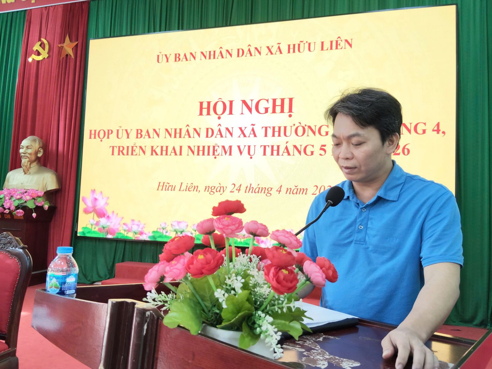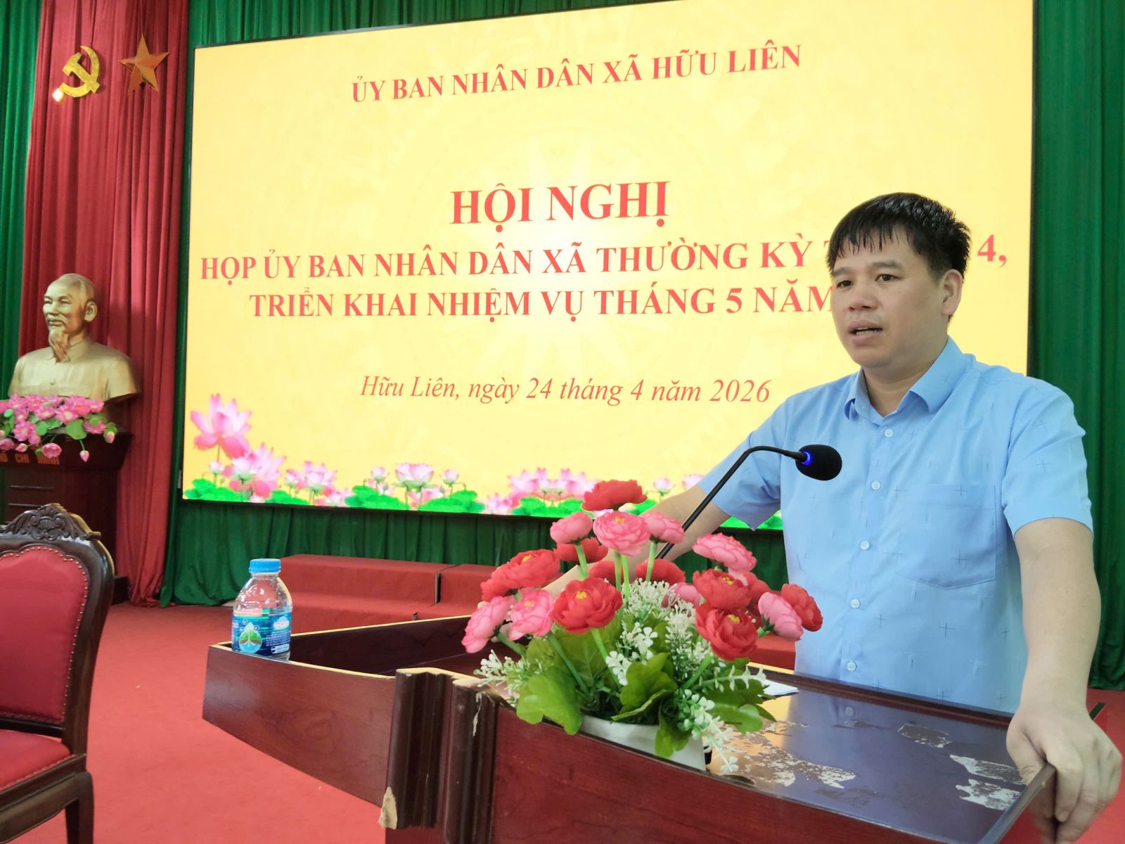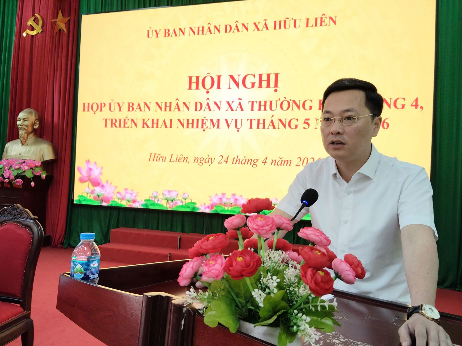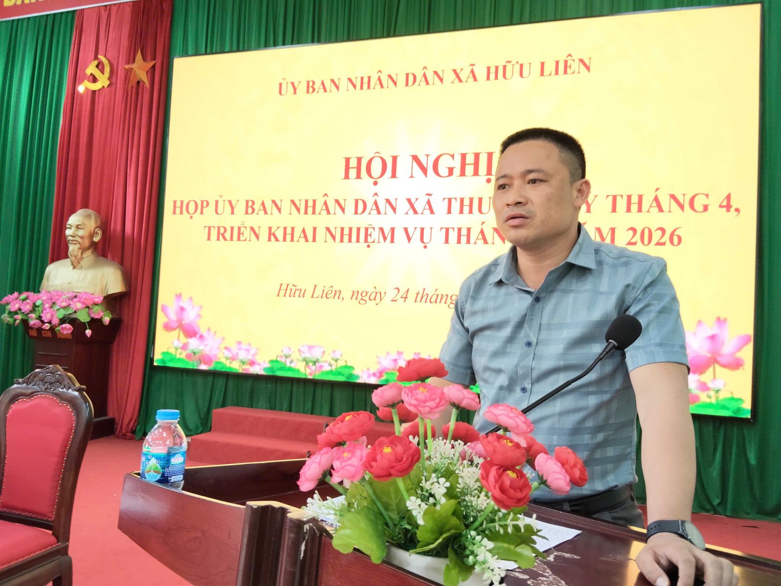 Ngày 24/4, UBND xã Hữu Liên tổ chức hội nghị họp thường kỳ tháng 4/2026 nhằm đánh giá tình hình thực hiện nhiệm vụ phát triển kinh tế - xã hội, quốc phòng - an ninh tháng 4, đồng thời triển khai phương hướng, nhiệm vụ trọng tâm tháng 5/2026.