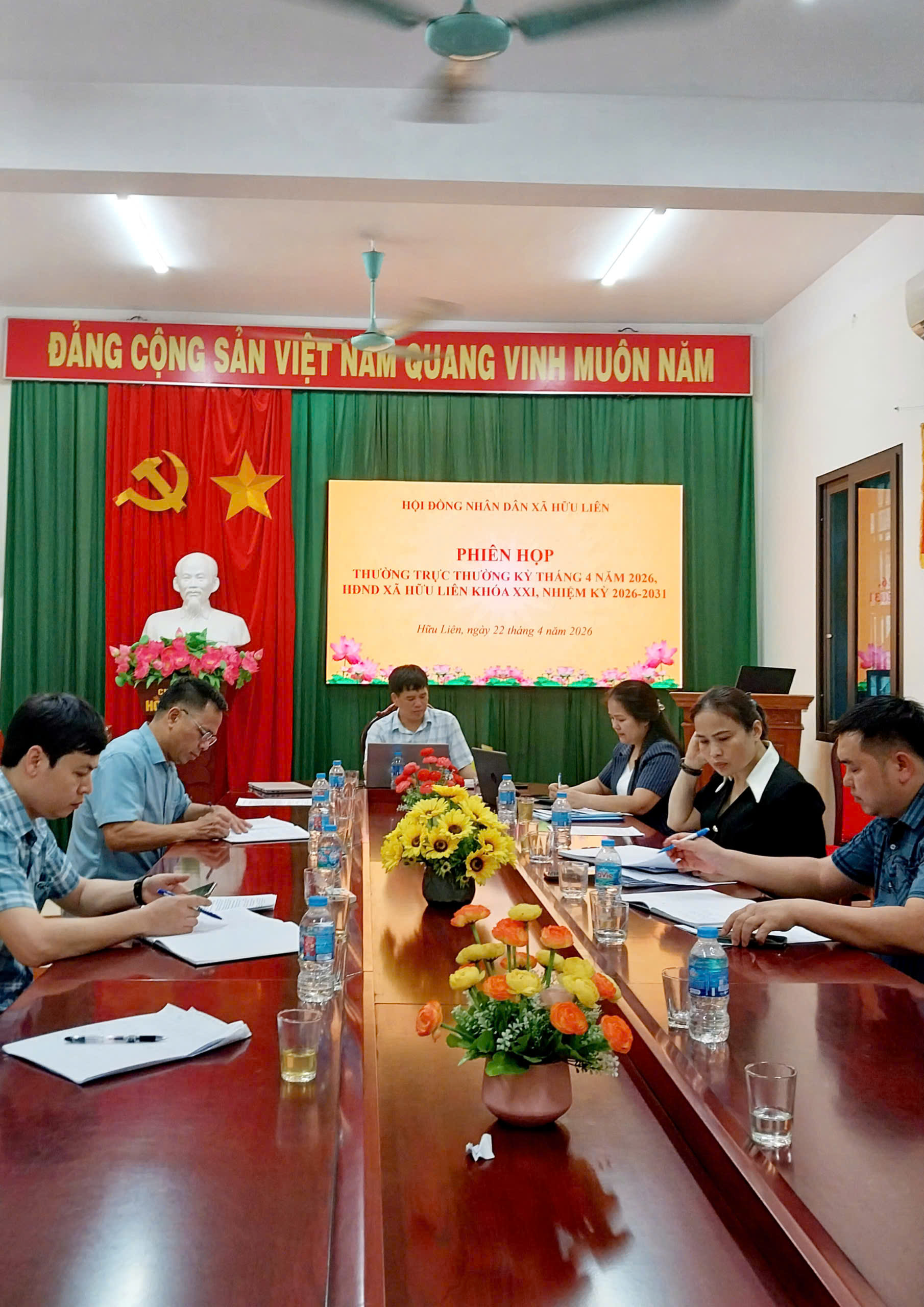 Ngày 22/4, Thường trực HĐND xã Hữu Liên tổ chức phiên họp thường kỳ tháng 4 năm 2026 nhằm đánh giá kết quả hoạt động trong tháng và triển khai nhiệm vụ trọng tâm tháng 5. Đồng chí Nguyễn Duy Toàn, Bí thư Đảng ủy, Chủ tịch HĐND xã chủ trì phiên họp.