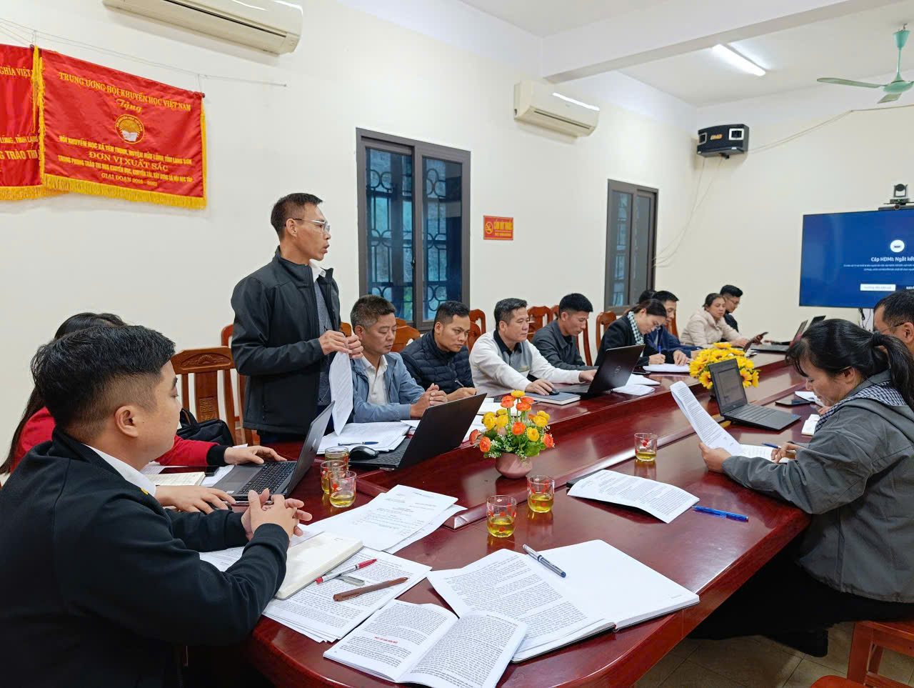 Tại buổi sinh hoạt, các đảng viên đã được nghe đồng chí Bí thư Chi bộ quán triệt mục đích, ý nghĩa của việc tổ chức sinh hoạt chuyên đề, nhấn mạnh tầm quan trọng của việc nâng cao nhận thức, kỹ năng số và ứng dụng công nghệ thông tin trong công tác Đảng, công tác chính quyền cũng như trong thực hiện nhiệm vụ chính trị được giao. Các đảng viên trong Chi bộ đã tham gia thảo luận sôi nổi, chia sẻ kinh nghiệm và những thuận lợi, khó khăn trong quá trình học tập, ứng dụng công nghệ số vào công việc. Nhiều ý kiến thiết thực được đưa ra nhằm nâng cao chất lượng, hiệu quả công tác, góp phần thúc đẩy chuyển đổi số trong hệ thống chính trị ở cơ sở. .jpg)