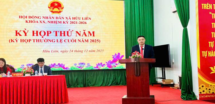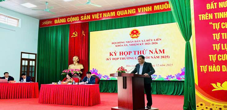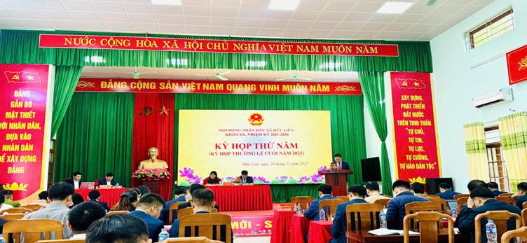Ngày 24/12/2025, từ 8 giờ 00 phút, Hội đồng nhân dân xã Hữu Liên khóa XX, nhiệm kỳ 2021–2026 đã tổ chức Kỳ họp thứ Năm – Kỳ họp thường lệ cuối năm 2025 và hoàn thành toàn bộ chương trình làm việc trong 1 ngày.