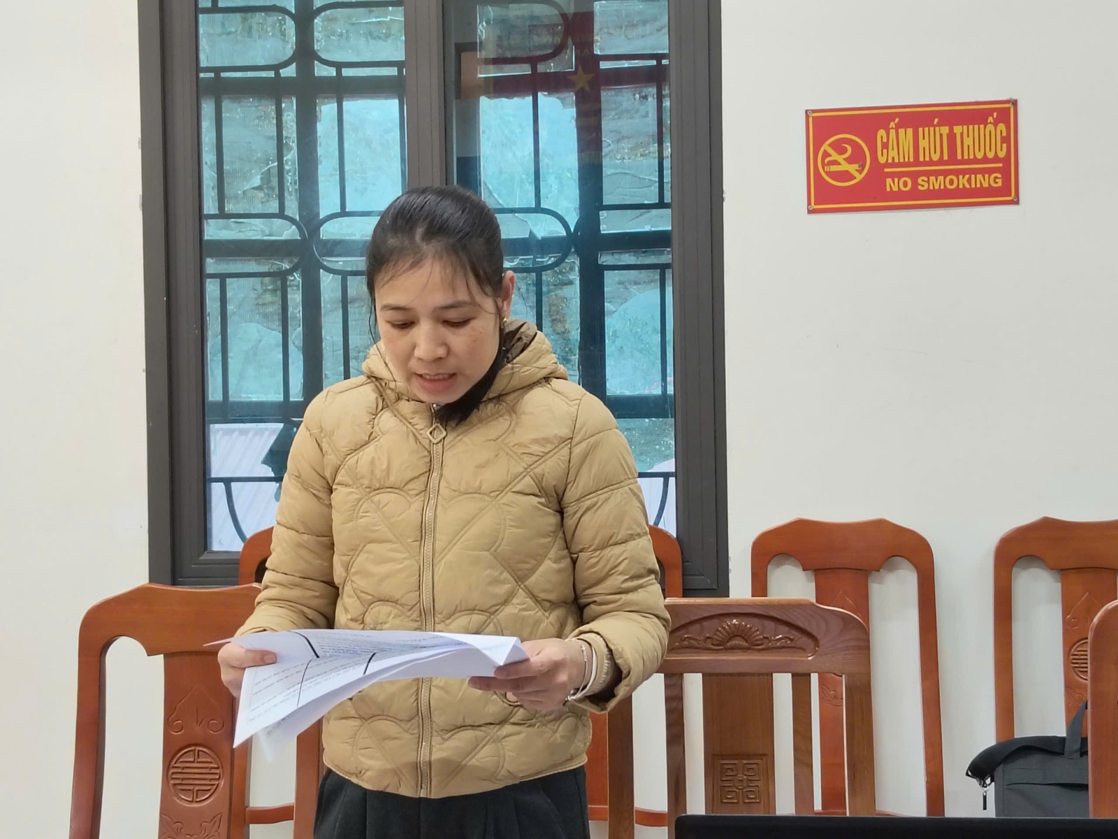 Đồng chí Phó chủ tịch UBMTTQ xã thông qua báo cáo kết quả tổ chức lấy ý kiến nhận xét và tín nhiệm của cử tri nơi cư trú đối với người ứng cử đại biểu HĐND các cấp nhiệm kỳ 2026 – 2031