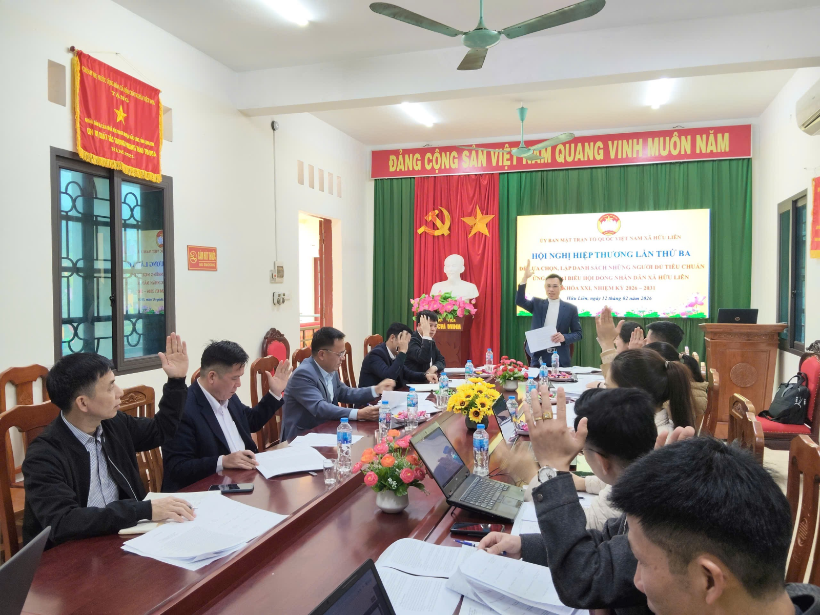 Chiều ngày 12/2, Ủy ban MTTQ Việt Nam xã Hữu Liên tổ chức Hội nghị hiệp thương lần thứ ba để lựa chọn, lập danh sách những người đủ tiêu chuẩn ứng cử đại biểu HĐND xã nhiệm kỳ 2026 – 2031.