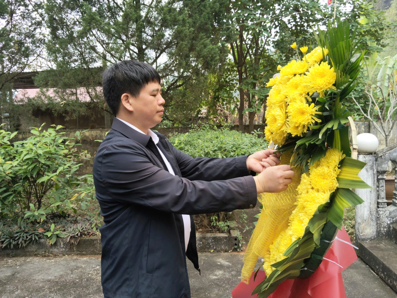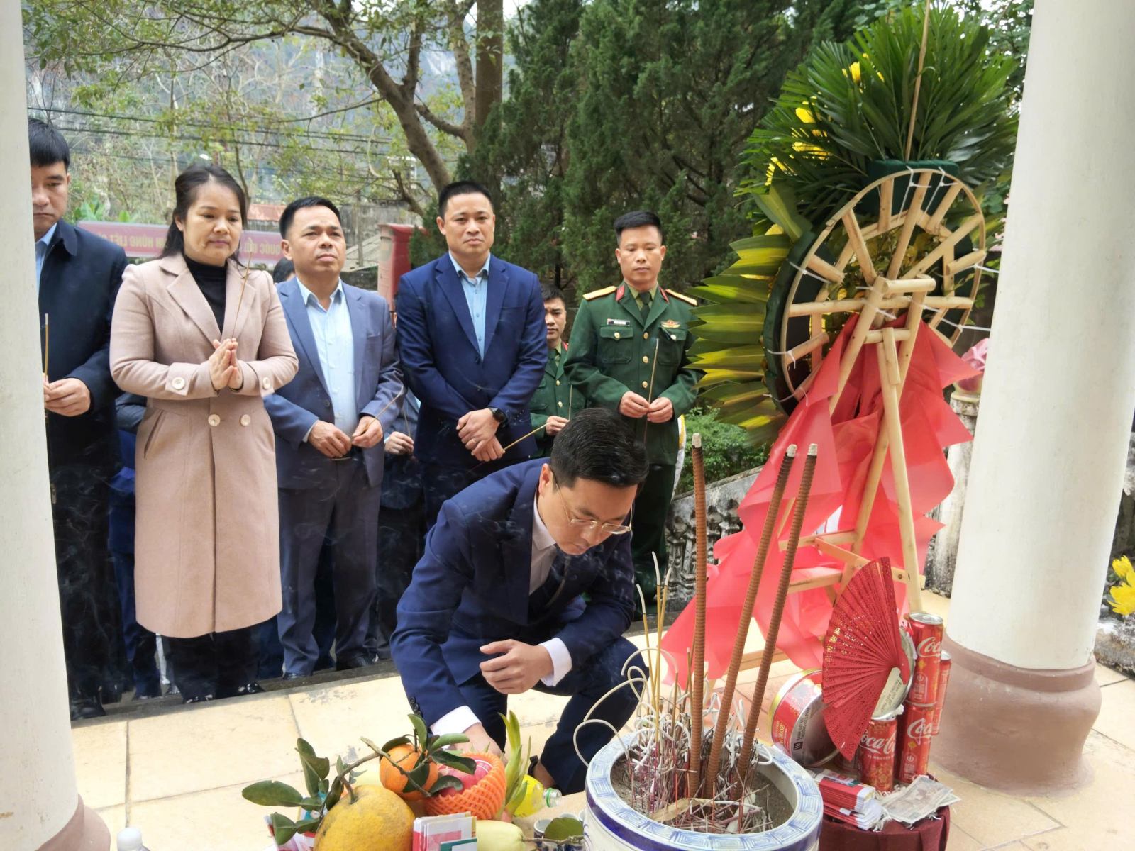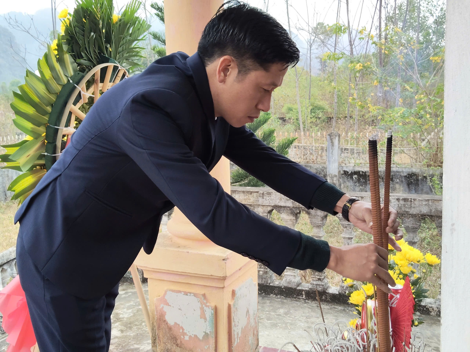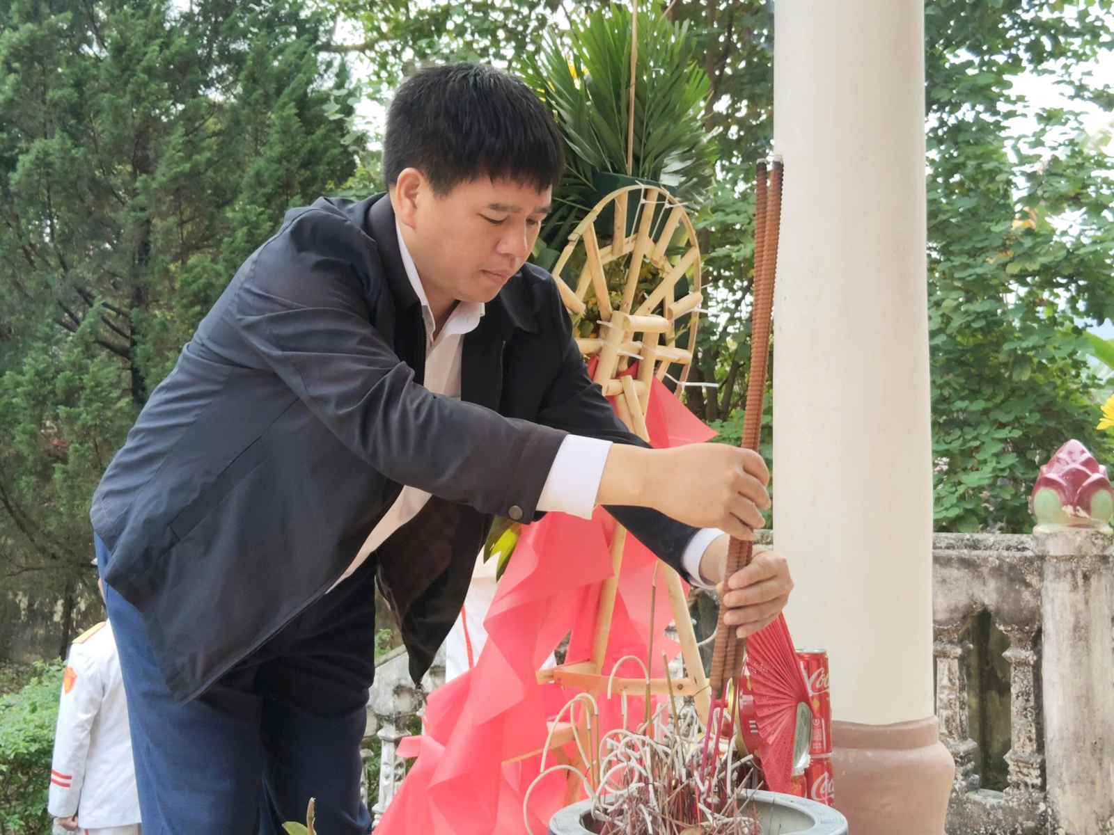 Đồng chí Nguyễn Quang Hoà, Phó Bí thư, Chủ tịch UBND xã dâng hương tại buổi lễ