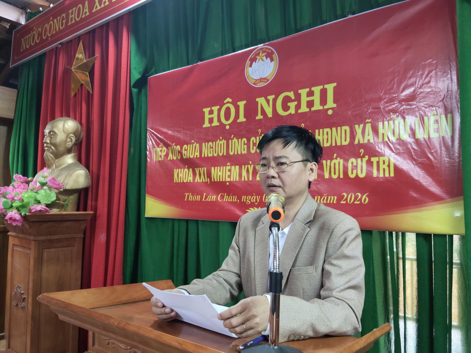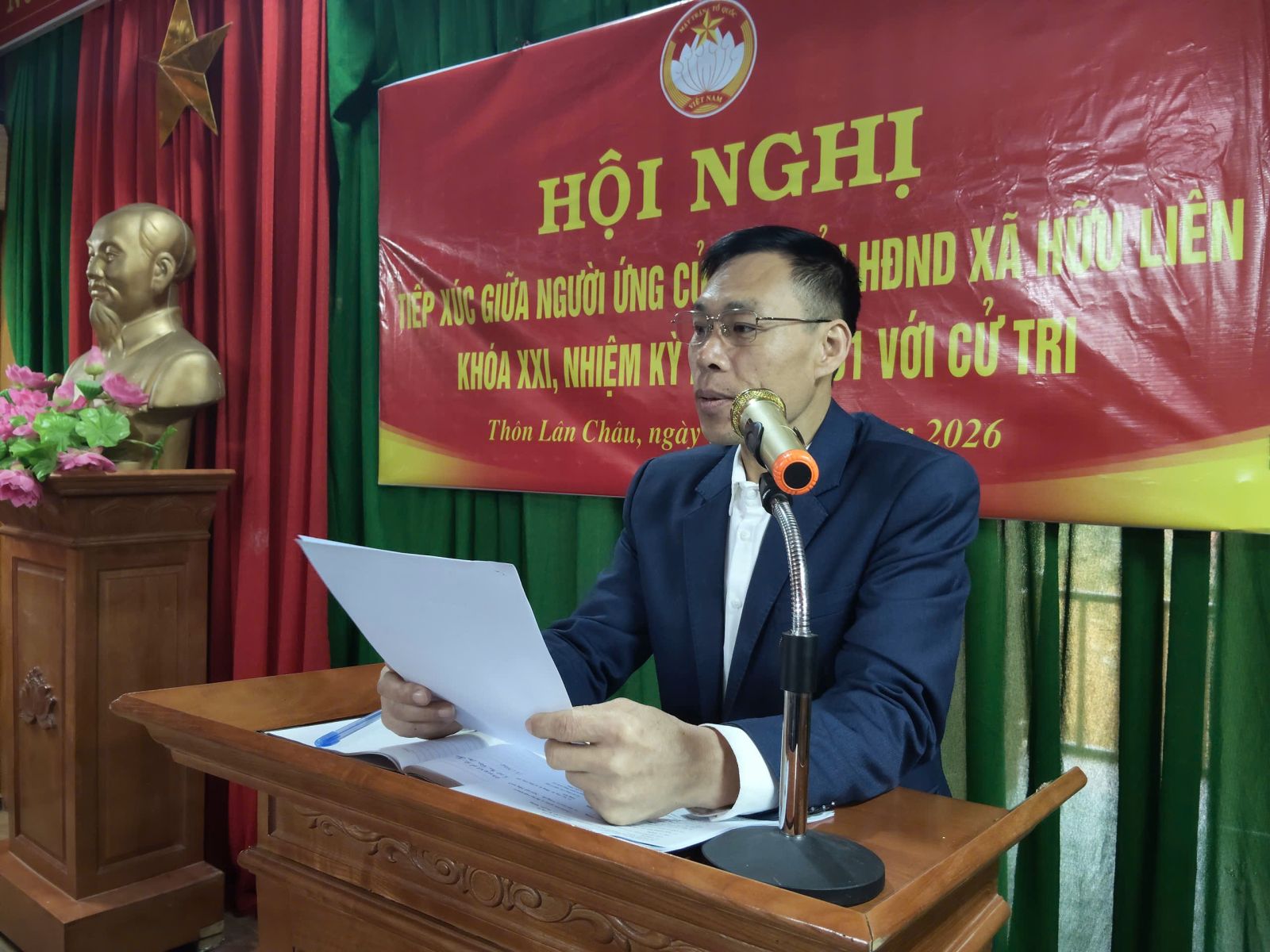 Hội nghị tiếp xúc cử tri được tổ chức theo đúng quy định, bảo đảm dân chủ, công khai, bình đẳng. Hội nghị là dịp quan trọng để người ứng cử trực tiếp gặp gỡ, lắng nghe, trao đổi với Nhân dân; qua đó giúp cử tri có thêm thông tin, cơ sở lựa chọn, bầu ra những đại biểu xứng đáng tham gia đại biểu HĐND xã Hữu Liên khóa XXI, nhiệm kỳ 2026 – 2031.