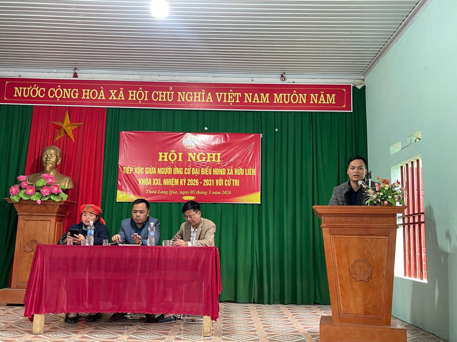 Các ứng cử viên đại biểu HĐND xã Hữu Liên khoá XXI, nhiệm kỳ 2026 – 2031, thuộc Đơn vị bầu cử số 1 tiếp xúc cử tri, vận động bầu cử tại thôn Lân Châu và thôn Làng Que