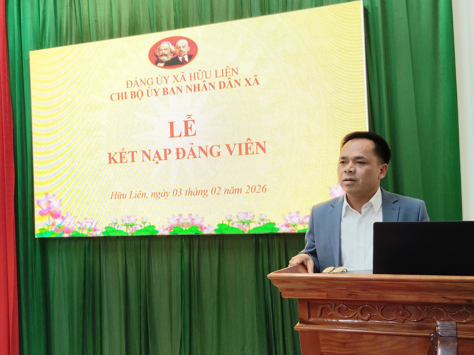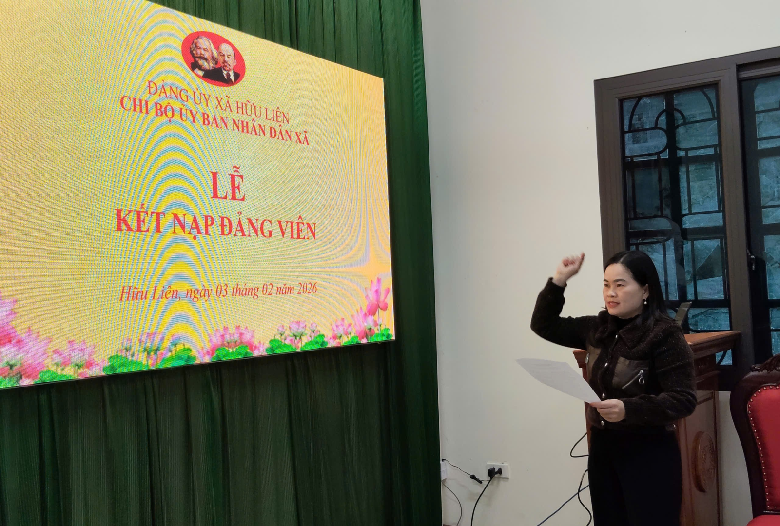 Chiều ngày 03/02, Chi bộ UBND xã Hữu Liên tổ chức Lễ kết nạp đảng viên cho quần chúng Lê Thị Vân, chuyên viên Phòng Văn hoá – Xã hội vào Đảng Cộng sản Việt Nam. Dự buổi lễ có đồng chí Hoàng Văn Ga, Uỷ viên Ban thường vụ Đảng uỷ, Trưởng Ban xây dựng Đảng; các đồng chí trong cấp uỷ và đông đủ các đảng viên trong chi bộ UBND xã Hữu Liên.