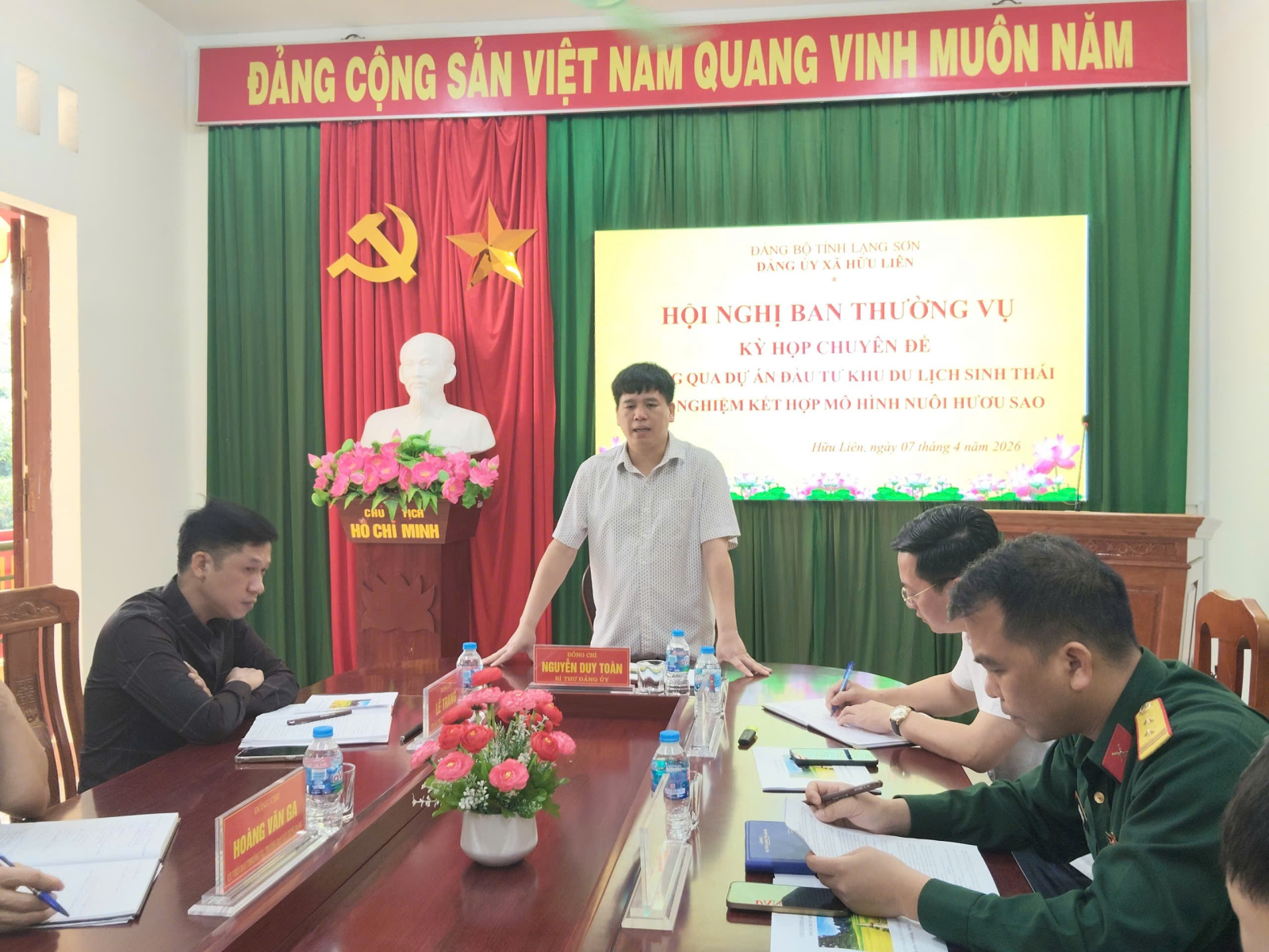 Sáng ngày 7/4, Đảng uỷ xã Hữu Liên tổ chức Hội nghị Ban Thường vụ Đảng ủy kỳ họp chuyên đề nhằm xem xét, cho ý kiến đối với dự án đầu tư xây dựng “Khu du lịch trải nghiệm và nuôi hươu sao mô hình” trên địa bàn.