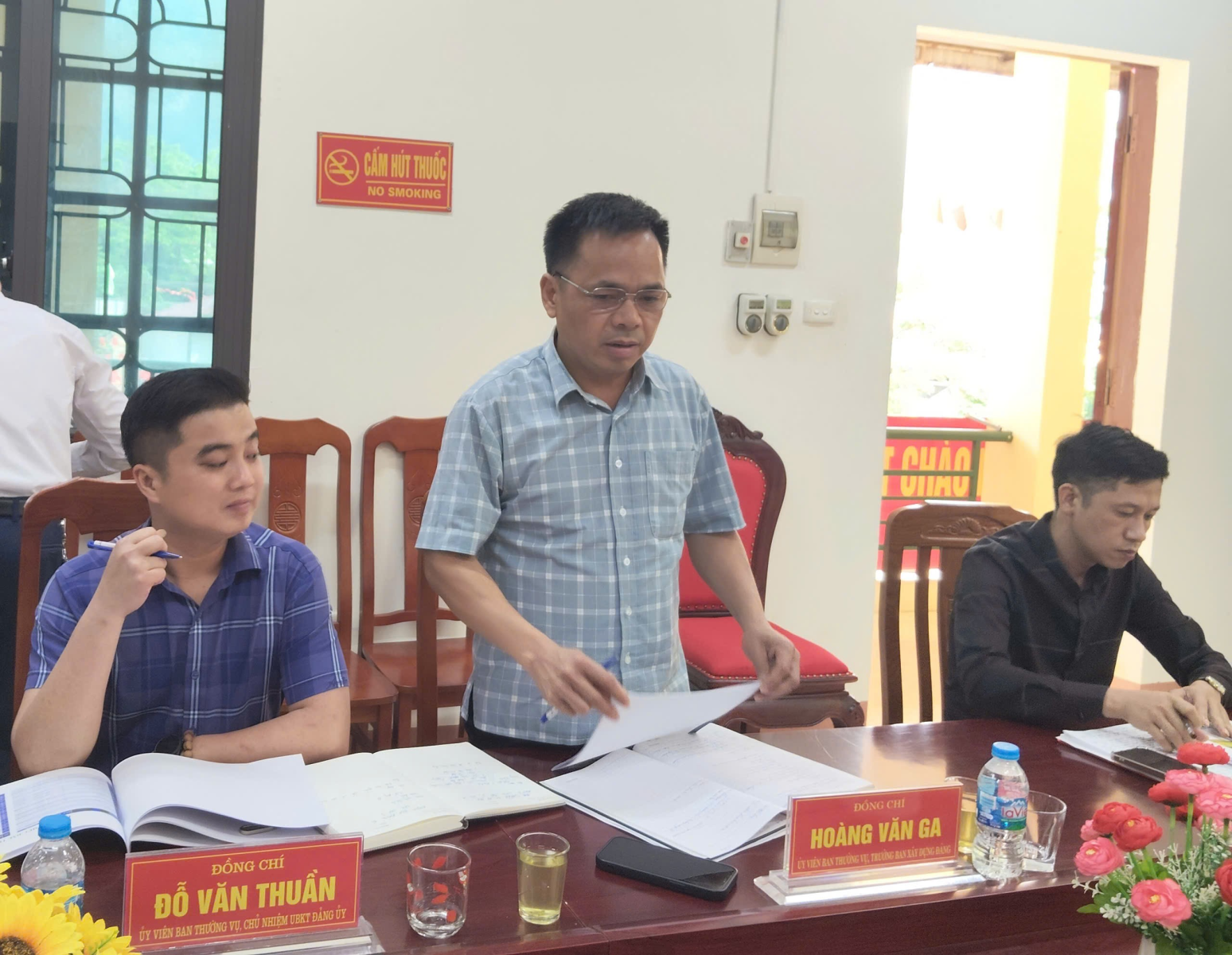 Đồng chí Nguyễn Duy Toàn, Bí thư Đảng uỷ, Chủ tịch HĐND xã phát biểu tai hội nghị