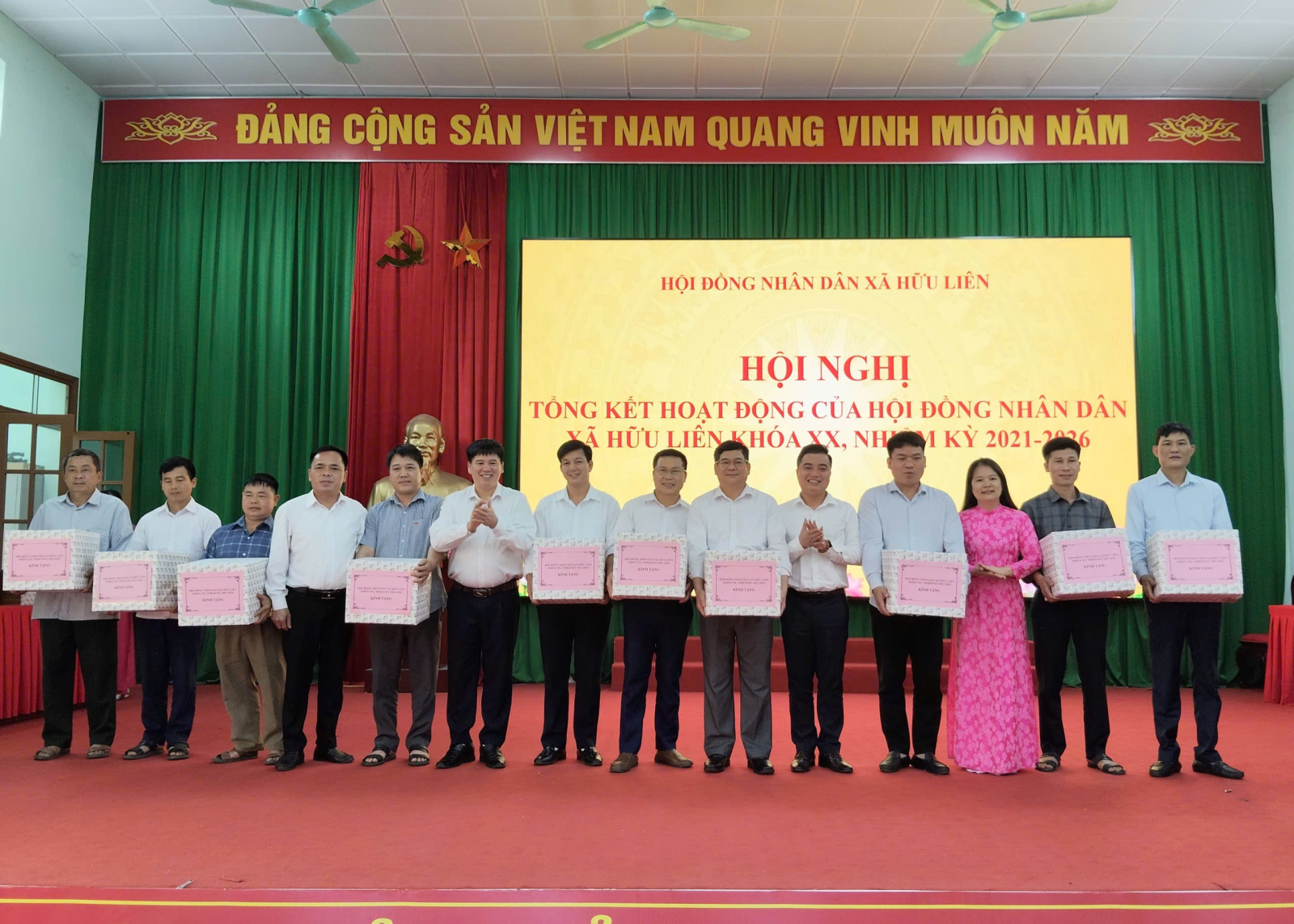 Ban tổ chức tặng quà các đại biểu HĐND xã Hữu Liên khoá XX, nhiệm kỳ 2021 - 2026