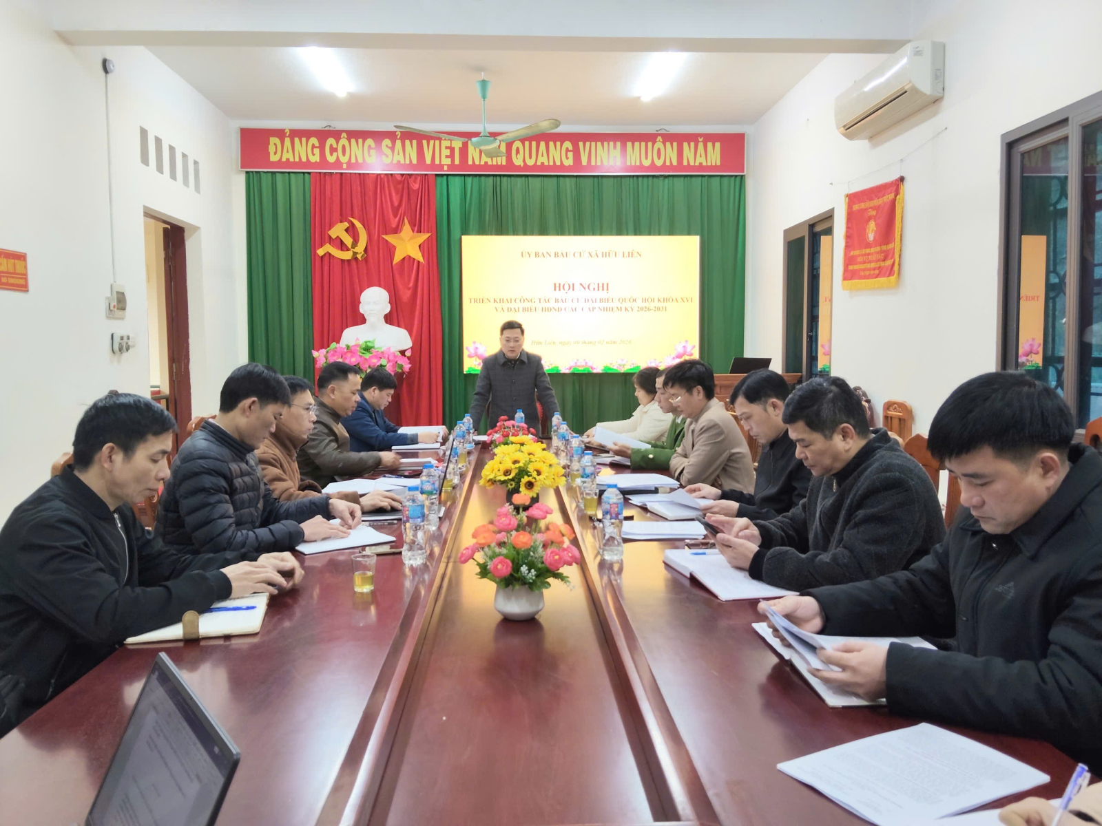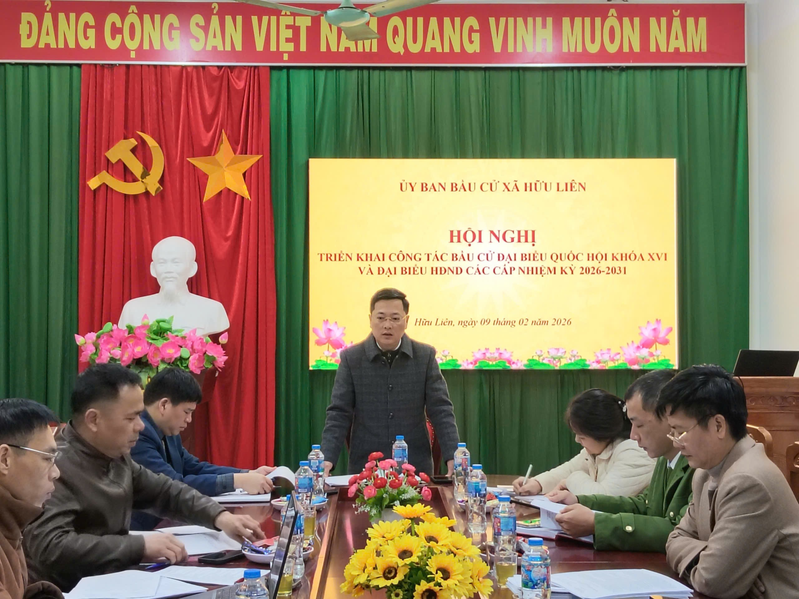 Sáng 9/2, Ủy ban Bầu cử xã Hữu Liên tổ chức Hội nghị triển khai công tác bầu cử Đại biểu Quốc hội khóa XVI và đại biểu HĐND các cấp nhiệm kỳ 2026–2031. Dự và chỉ đạo hội nghị có đồng chí Nguyễn Duy Toàn, Bí thư Đảng uỷ, Chủ tịch HĐND xã; Đồng chí Nguyễn Quang Hoà, Phó Bí thư Đảng uỷ, Chủ tịch UBND xã, Chủ tịch Ủy ban bầu cử xã chủ trì hội nghị.