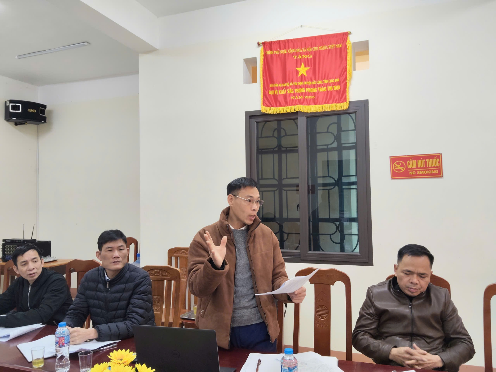 Đồng chí Nguyễn Duy Toàn, Bí thư Đảng uỷ, Chủ tịch HĐND xã phát biểu chỉ đạo tại hội nghị