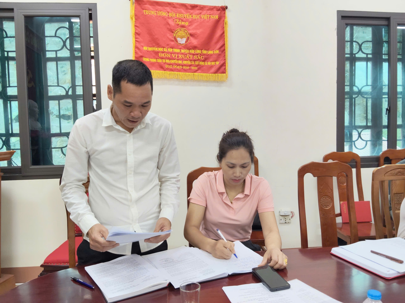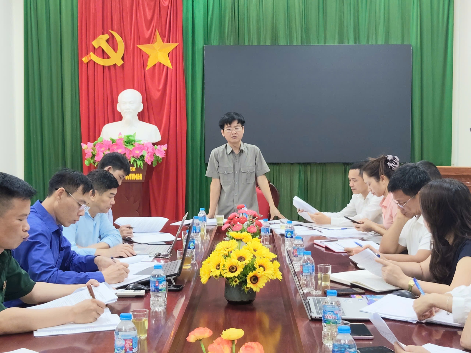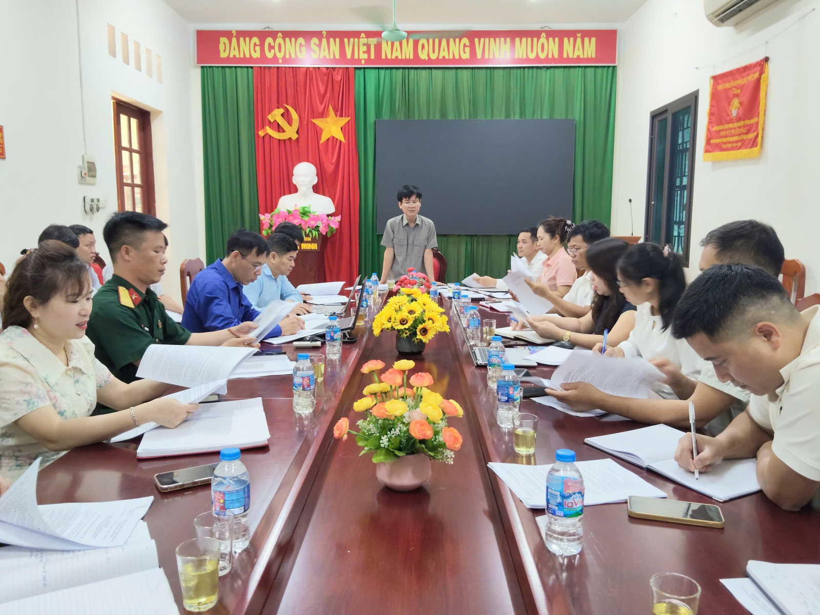 Cán bộ Phòng VHXH xã thông qua một số văn bản liên quan đến công tác Đại hội TDTT xã