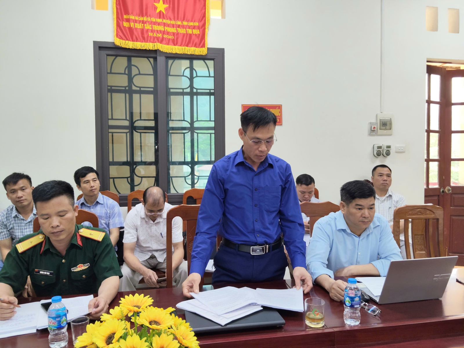 Đồng chí Khổng Hồng Minh, Phó Chủ tịch UBND xã, Trưởng BTC Đại hội TDTT xã phát biểu tại cuộc họp