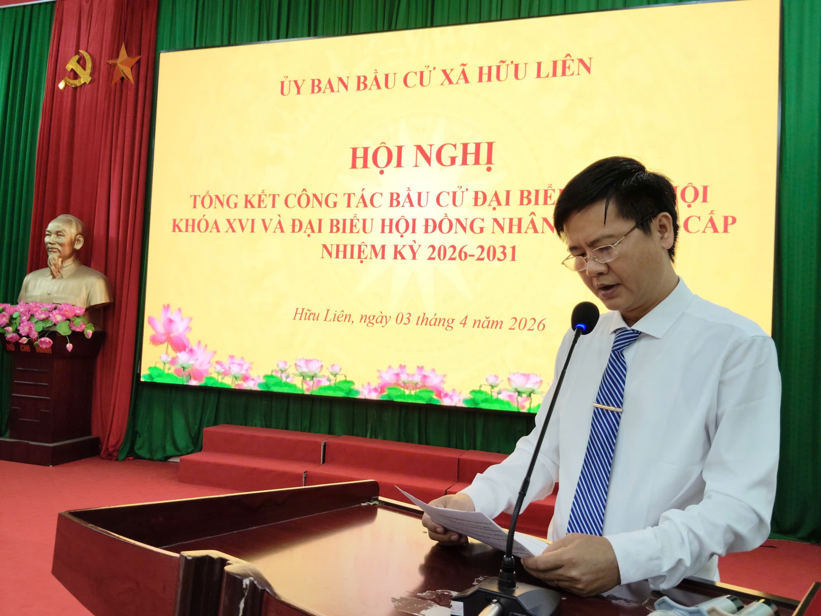 Sáng 3/4, xã Hữu Liên đã tổ chức Hội nghị tổng kết công tác bầu cử đại biểu Quốc hội khóa XVI và đại biểu HĐND các cấp nhiệm kỳ 2026 - 2031.