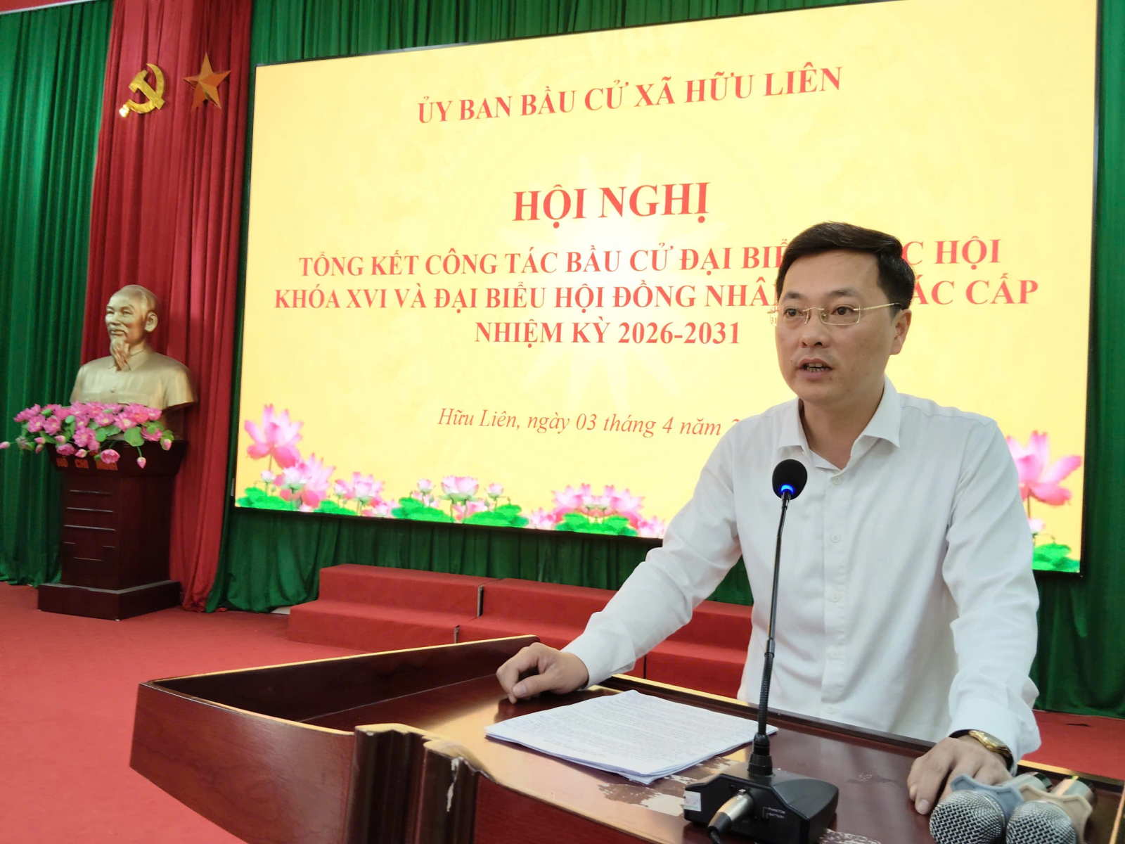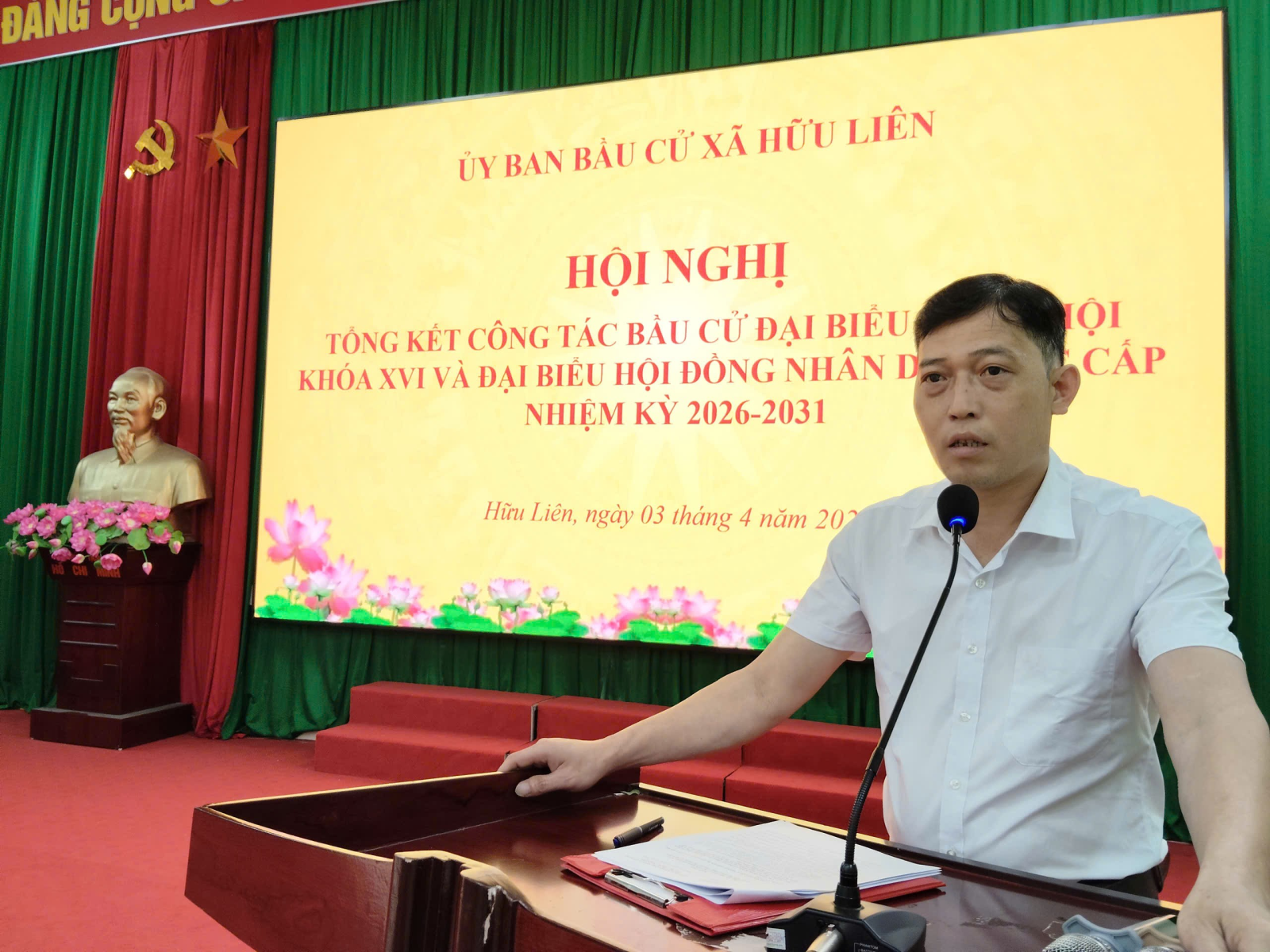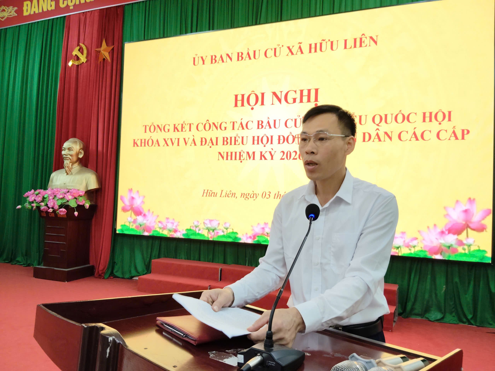 Theo báo cáo tại hội nghị, cuộc bầu cử trên địa bàn xã Hữu Liên đã được triển khai đồng bộ, đúng quy trình, quy định của pháp luật, dưới sự lãnh đạo, chỉ đạo chặt chẽ của cấp ủy Đảng, chính quyền và sự phối hợp hiệu quả của Ủy ban MTTQ cùng các tổ chức chính trị - xã hội. Công tác chuẩn bị được thực hiện kỹ lưỡng từ việc thành lập các tổ chức phụ trách bầu cử, hiệp thương giới thiệu người ứng cử, lập và niêm yết danh sách cử tri, đến công tác tuyên truyền, đảm bảo an ninh trật tự.