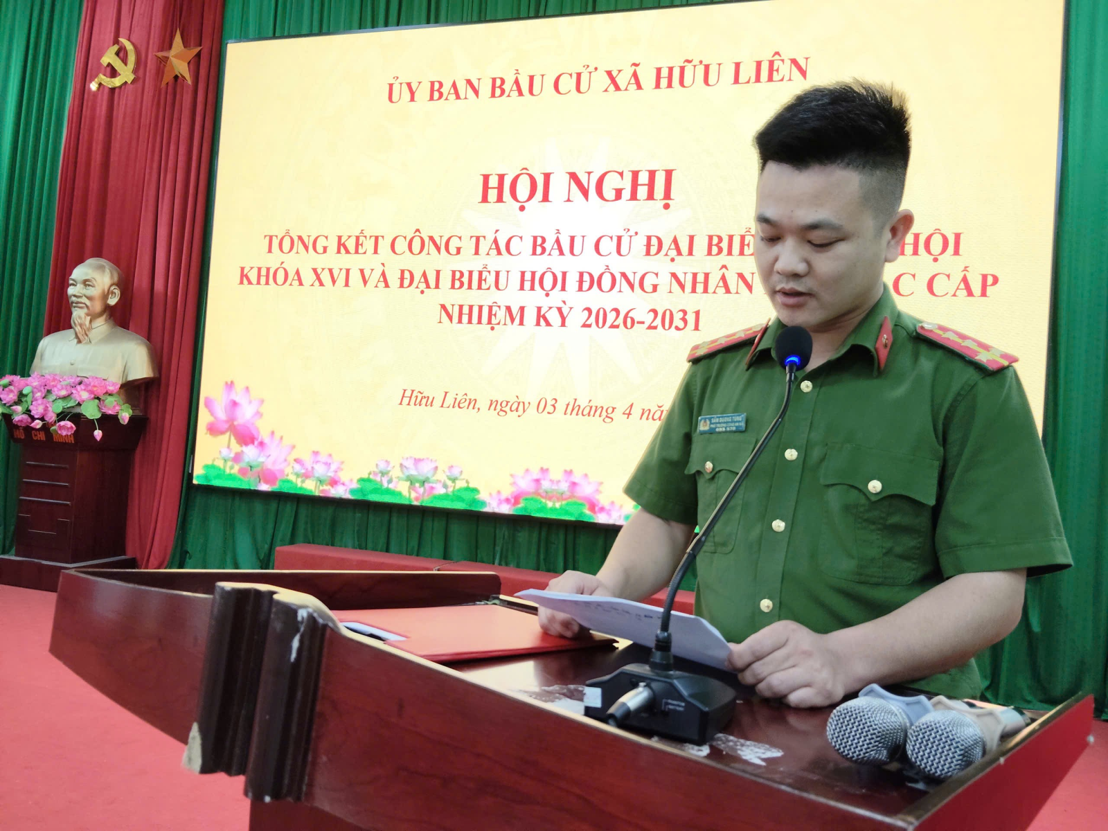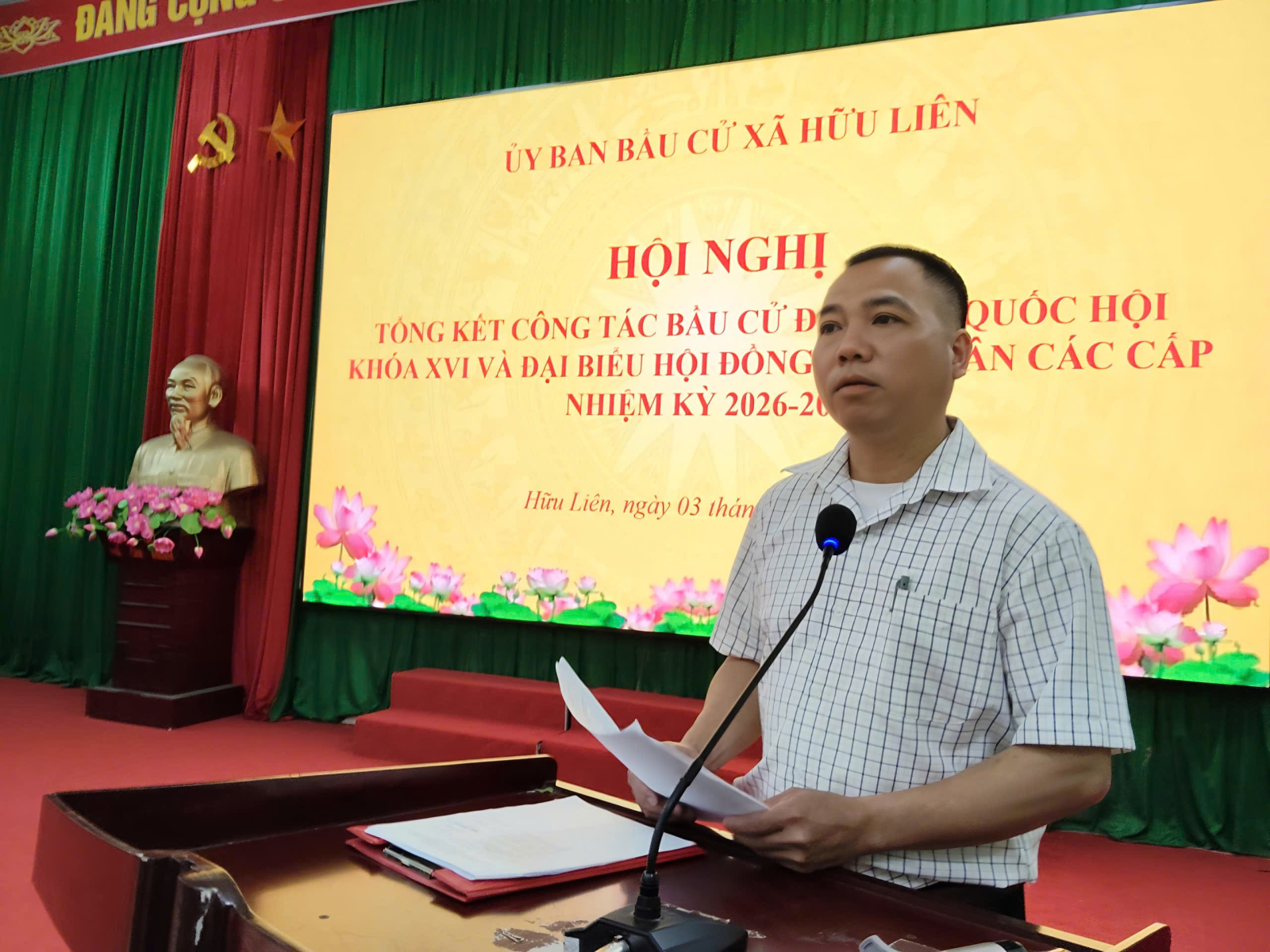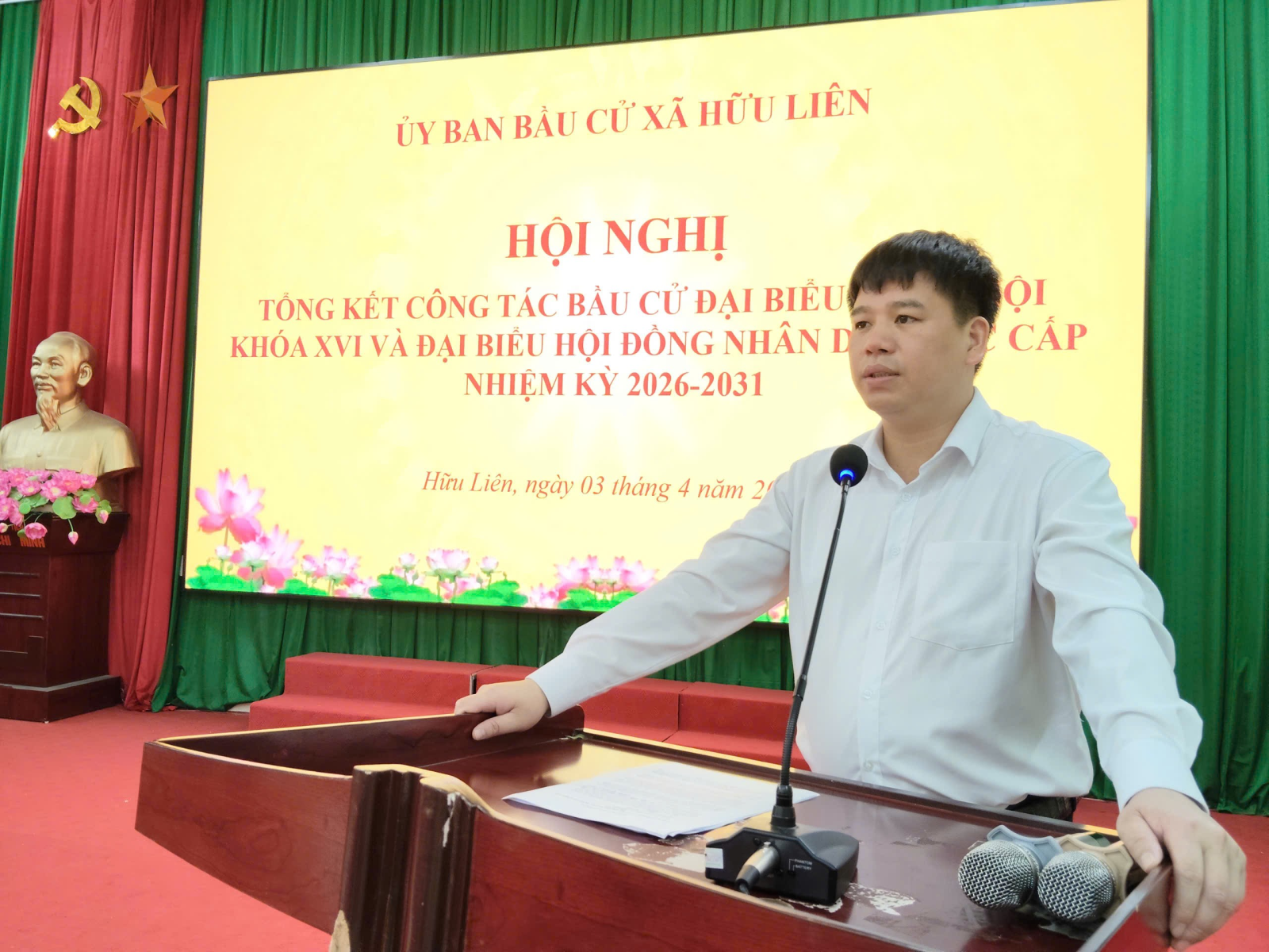 Theo báo cáo tại hội nghị, cuộc bầu cử trên địa bàn xã Hữu Liên đã được triển khai đồng bộ, đúng quy trình, quy định của pháp luật, dưới sự lãnh đạo, chỉ đạo chặt chẽ của cấp ủy Đảng, chính quyền và sự phối hợp hiệu quả của Ủy ban MTTQ cùng các tổ chức chính trị - xã hội. Công tác chuẩn bị được thực hiện kỹ lưỡng từ việc thành lập các tổ chức phụ trách bầu cử, hiệp thương giới thiệu người ứng cử, lập và niêm yết danh sách cử tri, đến công tác tuyên truyền, đảm bảo an ninh trật tự.
