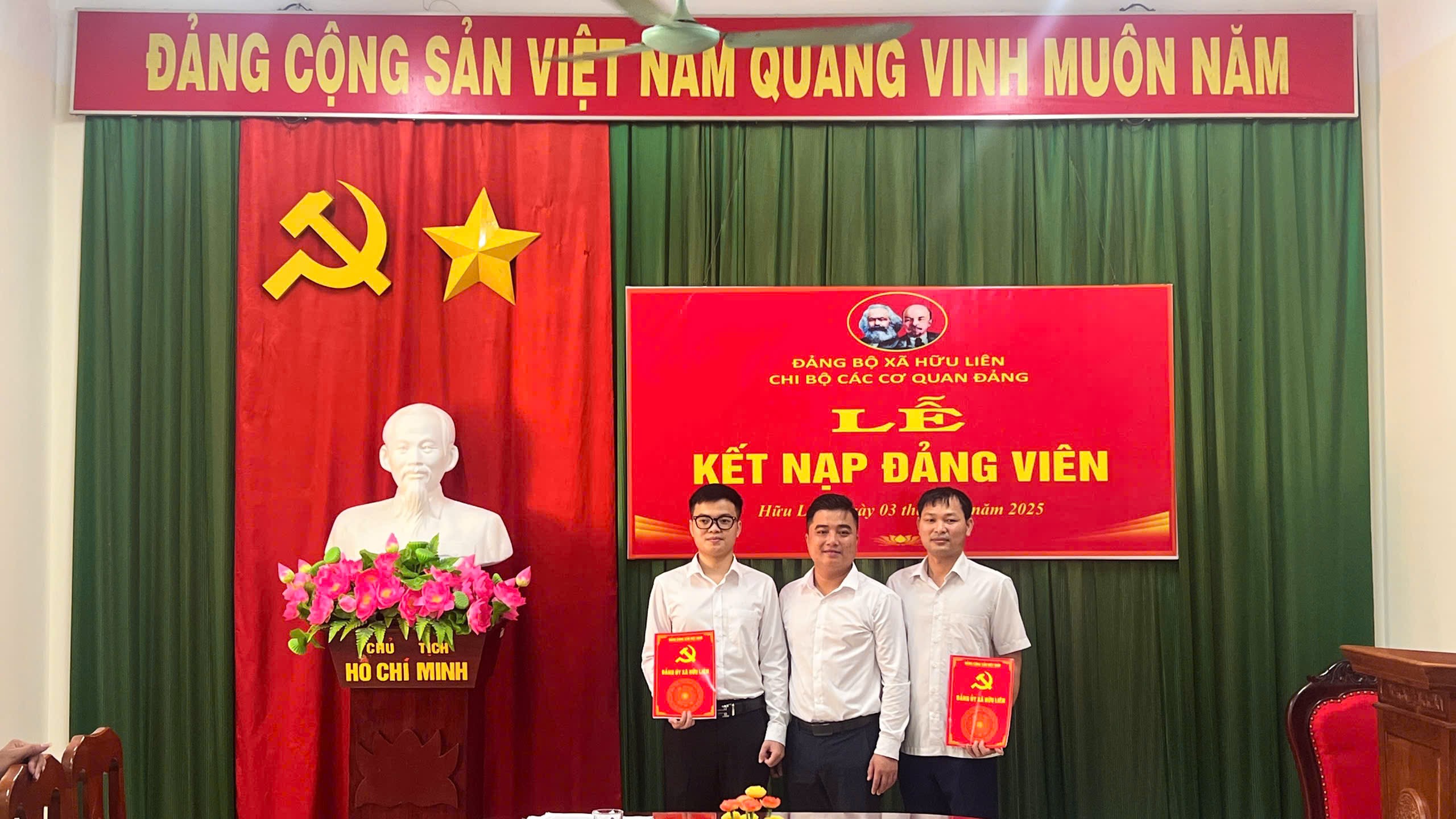 Ngày 03/10/2025, Chi bộ các cơ quan Đảng xã Hữu Liên đã long trọng tổ chức Lễ kết nạp Đảng viên mới cho 2 quần chúng ưu tú: đồng chí Hoàng Văn Nguyên và đồng chí Lộc Duy Quang.